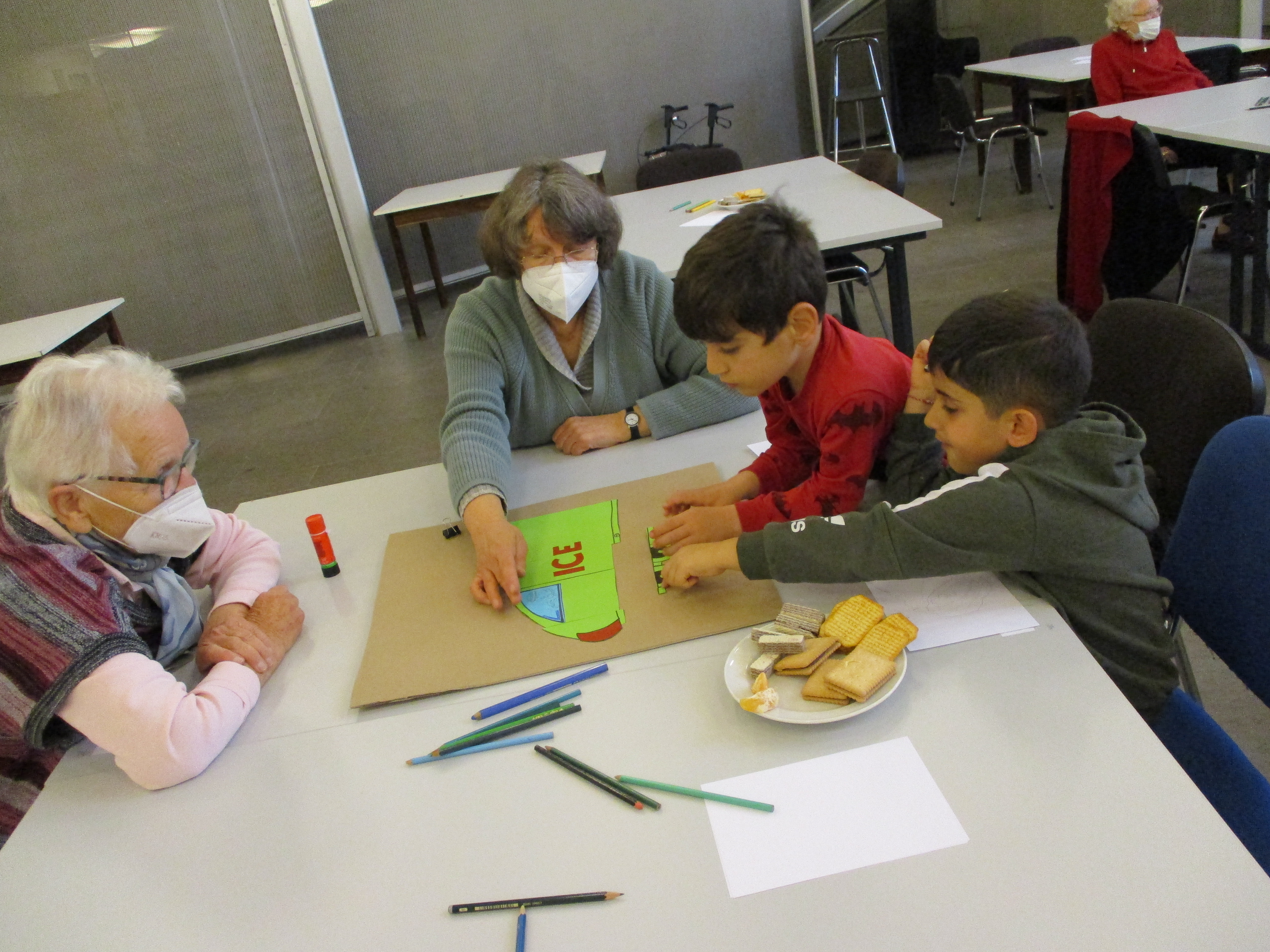 Angestoßen und organisiert wurde das Kooperationsprojekt von gemeinsam.ruhr, der Fachstelle der Inneren Mission, die die Seniorenarbeit im Kirchenkreis Bochum begleitet. Unter dem Motto „Verborgene Talente – Was wir gut und gerne mach(t)en“ setzten sich Kinder und Seniorinnen aus dem Westend auf gestalterischen Wegen mit ihren damaligen und heutigen Talenten, Interessen und Hobbies auseinander. Dabei entstand im ersten Schritt ein Talente-Mobile, bei dessen Anfertigung sich die Beteiligten gegenseitig kennenlernten. Beim Folgetermin wurde ein Riesen-Memory- Spiel erstellt. Die einzelnen Paare bildeten Gegenstände von früher und heute ab. Dieses wurde abschließend gemeinschaftlich gespielt, was einen gewinnbringenden Austausch und Projektabschluss für beide Generationen ergab.